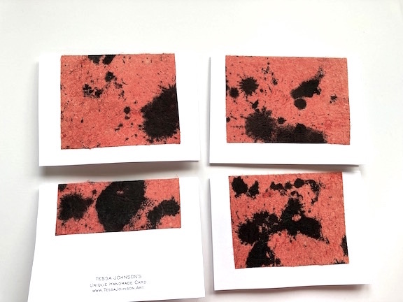 Red Earth:Ink on Thai Paper, heated by the sun then collaged.Small Art Pieces are hand done and unique. Can be used as a very special greeting card with matching envelopes and blank interior. Each piece is 5 x 7 available for $20.00 Shipping by USPS Priority mail shipping holds up to 16 cards per shipment. Find out about new cards on Instagram: https://www.instagram.com/tessajohnson_art/ |