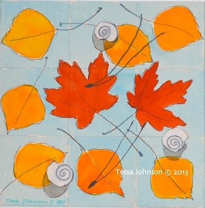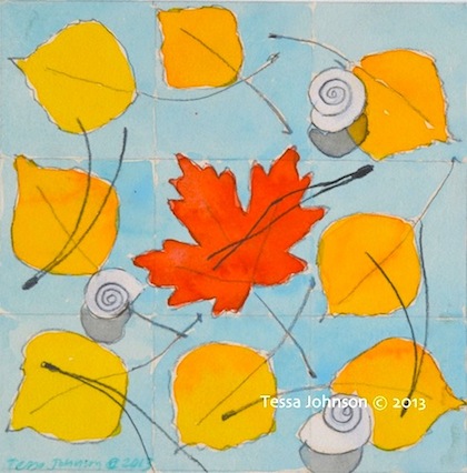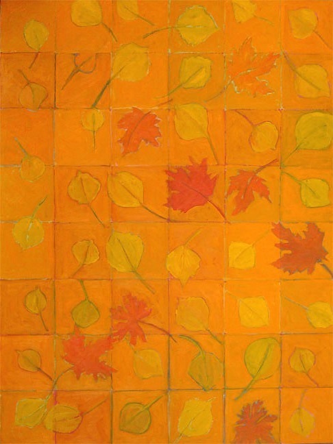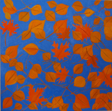 One panel of triptych "Crisp Blue with Aspen and Wild Geranium Leaves"