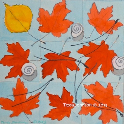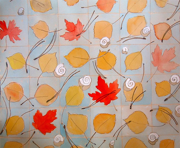 Jackpine Needles, Mountain Aspen and Maple leaves, and small white Snail Shells